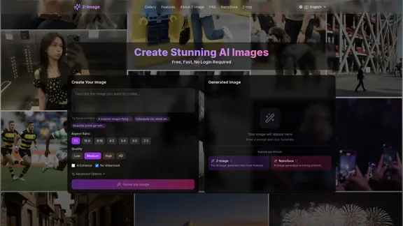 Z-Imageを使って、無料で素晴らしいAI生成画像を作成しましょう。登録やログインは不要で、手間いらずの体験をお楽しみください。私たちのプラットフォームは、高品質な結果を毎回保証する先進的な6Bパラメータモデルによって支えられています。