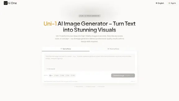 Uni-1 AI画像生成器を使用すれば、テキストプロンプトを数秒で高品質な画像に簡単に変換できます。アート、イラスト、写真、デザインを作成したい場合でも、私たちの高度なAIがサポートします。