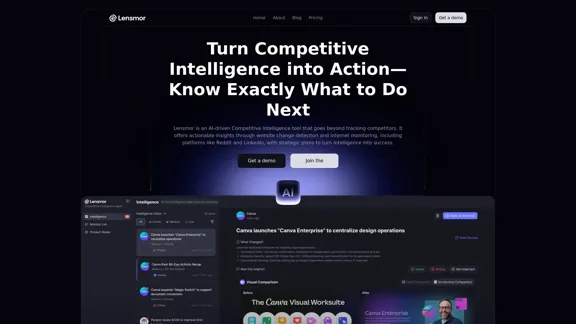Lensmor é a sua ferramenta de IA para monitorar mudanças em sites. Mantenha-se atualizado sobre seus concorrentes 24 horas por dia, analise o impacto de suas atualizações e transforme essas mudanças em insights acionáveis com nossos recursos de inteligência competitiva.