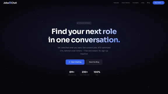 Descubra oportunidades de emprego sem esforço com a ajuda da IA. Basta fazer o upload do seu CV para uma rápida análise no estilo ATS, receber reescritas personalizadas e obter uma carta de apresentação específica para o emprego — tudo gratuitamente, instantaneamente e sem a necessidade de uma conta.