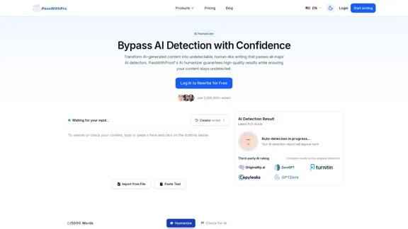 С помощью AI humanizer от PassWithProof вы можете без труда обходить системы обнаружения ИИ. Наш инструмент гарантирует, что ваш контент не только проходит мимо основных детекторов ИИ, но и сохраняет высокий стандарт качества и естественный стиль написания.