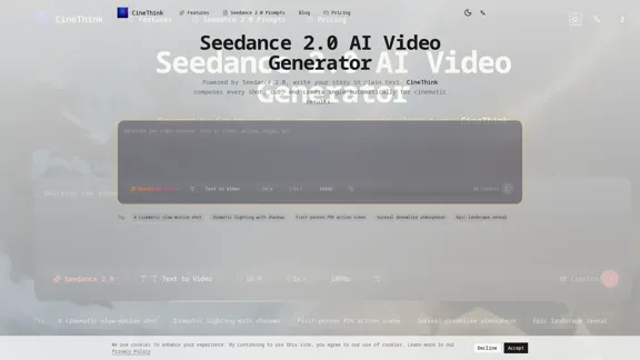 Преобразуйте свои идеи в захватывающие видео без усилий с помощью нашего передового генератора видео на базе ИИ. Создавайте впечатляющие видео всего за несколько секунд, используя мощные функции Seedance 2.0.