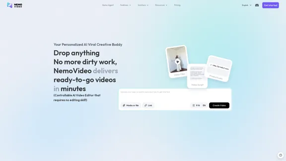 Прощай с утомительными задачами! Nemovideo — это ваш бесплатный инструмент для нарезки видео и его переработки. Мгновенно создавайте вирусные клипы с помощью автоматического вдохновения от ИИ, субтитров, озвучивания и многого другого!
