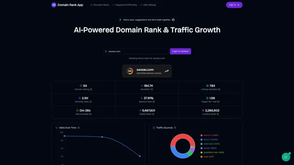 發現使用我們的應用程式分析您的域名權威的力量。輕鬆追蹤您的排名,獲得可行的SEO見解,幫助您提升自然流量。享受全面的指標和深入的競爭對手分析,讓您在競爭中保持領先。