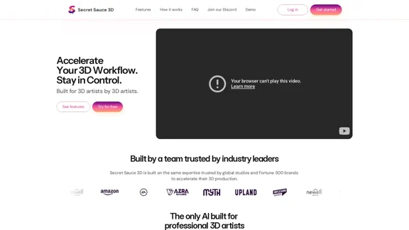 | 入门版 | $49 | 25 | 文本转 3D、图像转 3D、GLB、FBX、OBJ、USDZ |