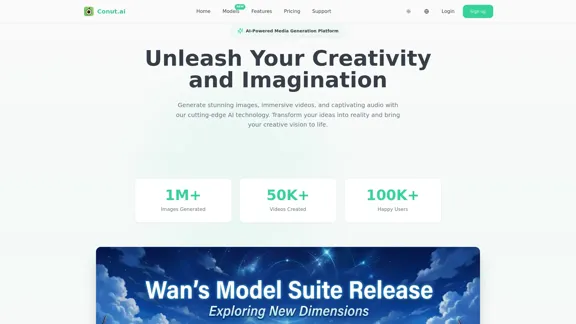 使用 Conut.ai,您可以輕鬆創建驚人的 AI 生成圖像和視頻。深入探索 NanoBanana Pro、Sora 2、WAN models 等尖端 AI 模型的世界。我們的平台提供專業級的圖像生成、視頻創建和內容創作工具,專為像您這樣的創作者量身定制。