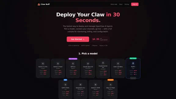 體驗使用 OpenClaw 啟動和監控 AI 代理的最快方式。只需選擇一個模型,進行付款,您就可以通過全面的管理控制台、無縫的渠道整合和詳細的使用追蹤,隨時上線。