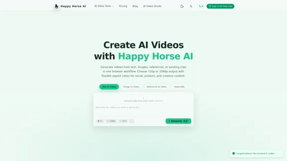 使用 Happy Horse AI,您可以輕鬆地利用文本、圖像、參考資料或甚至您現有的片段來創建 AI 影片。享受無縫的瀏覽器工作流程,支持 720p 和 1080p 輸出。