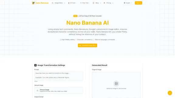 nanobanana ai 是一款免費的 AI 圖像編輯器,讓您可以使用自然語言提示生成和編輯圖像。使用 nanobanana ai 可以精確地更改背景、風格或物體,同時保持角色的一致性和視覺質量。快速、免費、無需註冊、無限次使用。