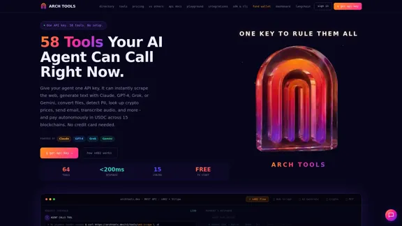探索58種由AI驅動的工具,全部通過單一API訪問。從網頁搜索和圖像生成到加密貨幣價格、事實查核和研究報告,我們都能滿足您的需求。享受按需付費的模式,無需訂閱。