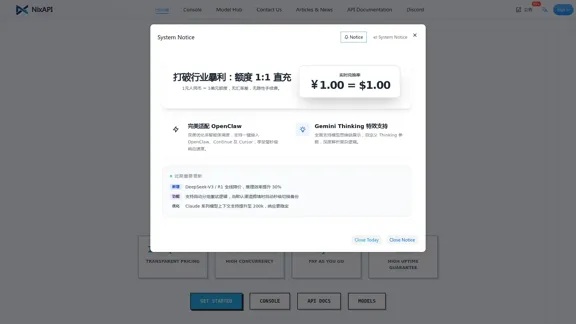 NixAPI 是開發者的首選平台,專注於提供高性價比的大語言模型 API。我們集成了 GPT-4、Claude 3.5 和 Gemini 等頂尖模型,確保您享受到極低的延遲和超高的性價比。支持國內直連,按需計費,沒有隱性門檻,助力您的 AI 應用快速部署與全球化。