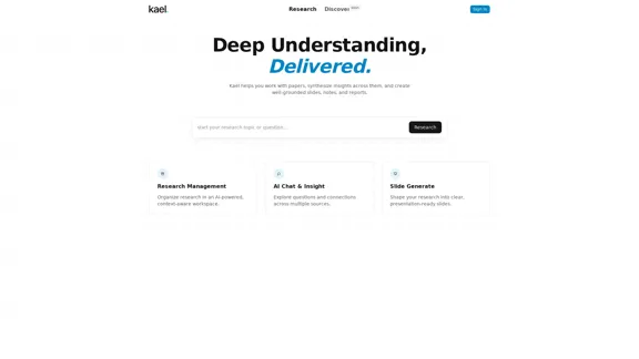 Kael is your go-to AI-powered conversational assistant, designed to enhance your interactions with features like file uploads, tool calls, and real-time streaming responses. Enjoy a seamless and efficient experience as you engage with Kael.