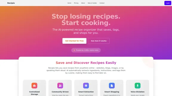 With Recipio, you can easily save, organize, and discover recipes using AI to extract information from any website. Create shopping lists, automatically tag cuisines, and join a community of thousands of home cooks who are enhancing their culinary experiences.