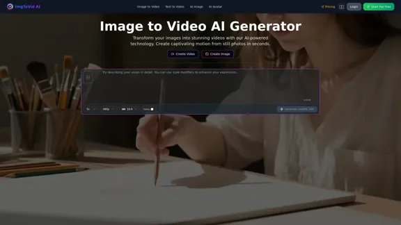 Transforme suas imagens em vídeos cativantes sem esforço com nossa IA de imagem para vídeo. Experimente o poder do nosso gerador de vídeo AI gratuito e veja suas fotos ganharem vida em vídeos de alta qualidade impressionantes—experimente hoje!