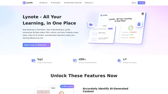 Lynote é a sua ferramenta ideal para resumir vídeos do YouTube, PDFs, artigos e muito mais. Com apenas um clique, você pode criar anotações, verificar conteúdo gerado por IA e baixar recursos, tudo projetado para aumentar sua eficiência de aprendizado em dez vezes.