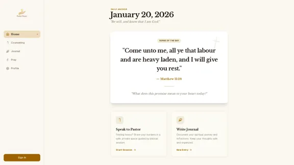 Experimente orientação bíblica personalizada e suporte em oração com seu próprio pastor de IA. Aproveite as escrituras diárias, guias de oração e journaling para enriquecer sua jornada de fé.
