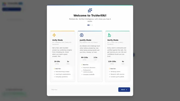Por que se contentar com apenas uma IA quando você pode aproveitar o poder de muitas? TruVerifAI reúne múltiplos modelos de IA para fornecer a você uma inteligência verificada e orientada por consenso na qual você pode realmente confiar.