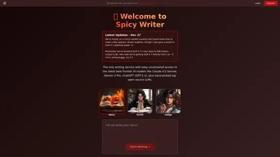 Get ready for uncensored access to cutting-edge models like Claude Sonnet 4.5, GPT-5.1, and Gemini 3 Pro. With Spicy Writer, you can dive into immersive fiction, explore mature themes, and tackle NSFW content without any restrictions. It's a far superior experience compared to the adult mode that ChatGPT has been hinting at but hasn't quite delivered.