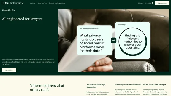 Elevate your legal practice with Clio Vincent, the meticulously crafted AI assistant designed specifically for lawyers. With unparalleled global content and cutting-edge research capabilities, Clio Vincent is here to streamline your workflows and enhance your efficiency.